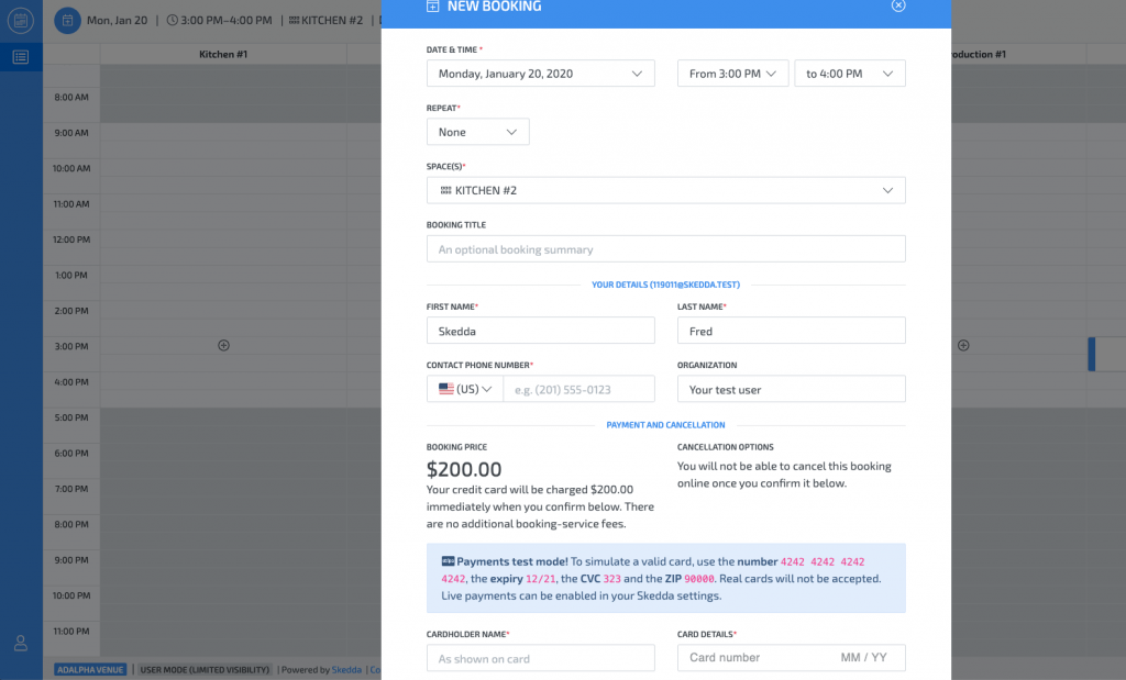 Managing a venue space for co-working, artists, chefs, and other creatives can be challenging. With Skedda, you are now able to manage each event space in an easy-to-use calendar format. You can even book and accept payments directly through Skedda’s integration with Stripe’s payment gateway! This makes running your business a breeze.