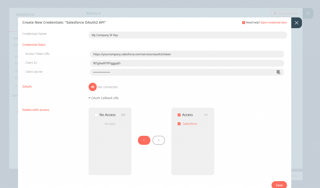 Create your company’s authentication key using the url format above, your SF client ID, and your client secret key.