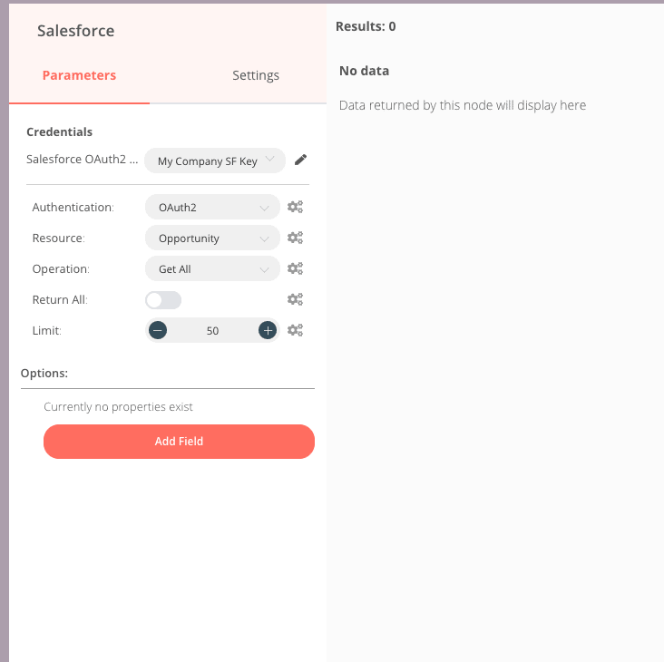 Select “opportunity” as the resource and “Get All” as the operation.